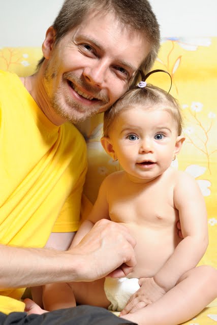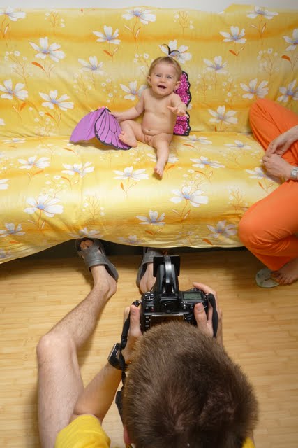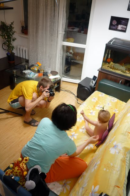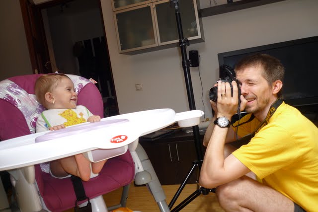Vazandu-l asa ocupat, si inspirat m-am gandit ca e bine sa ii pun talentul la treaba, si l-am rugat sa ne faca niste making-of-uri, sa ramana pentru posteritate. Insa incalzirea si a lui si a Andreei s-a facut in cateva poze cu tati (adica cu mine, cam nebarbierit si netuns ce-i drept)