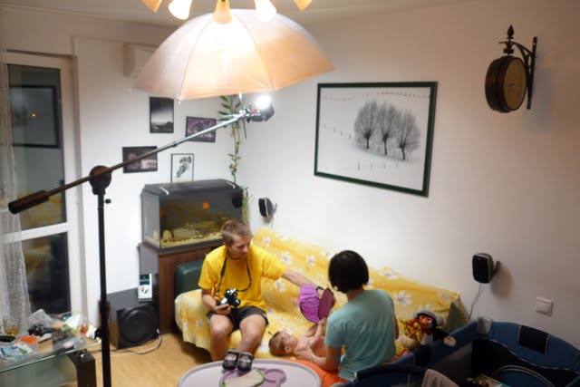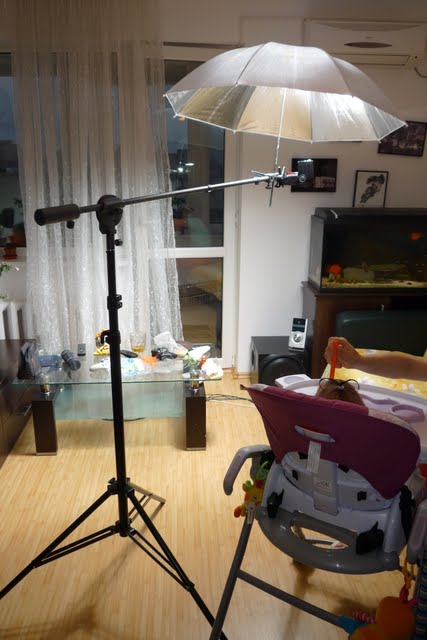 In incheiere, ca tot avem si poze de making-of, va arat setup-ul pe care l-am folosit: un SB-900 intr-o umbrela si comandat cu blitul de pe aparat. Ce a fost cel mai tare, e ca si micul Panasonic de care va povesteam eu mai demult, s-a descurcat minunat in a comanda SB-ul si a si expune corect pe deasupra, cu lumina suplimentara venita de la acesta.