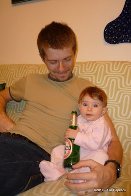 Azi, dupa ce a vomitat pe mine in timp ce o tineam in carca si ma jucam cu ea, m-am strambat ca toate alea cand a inceput sa imi miroasa ce cursese pe mine (bleah :-X). Cand m-a vazut cum ma stramb, a inceput sa se sparga de ras. Bine-nteles ca am repetat miscarea sa verific ca daia rade. A mers π