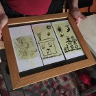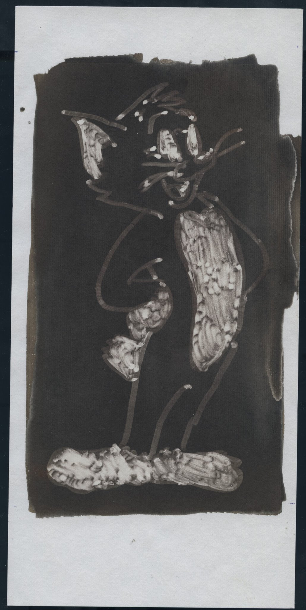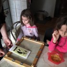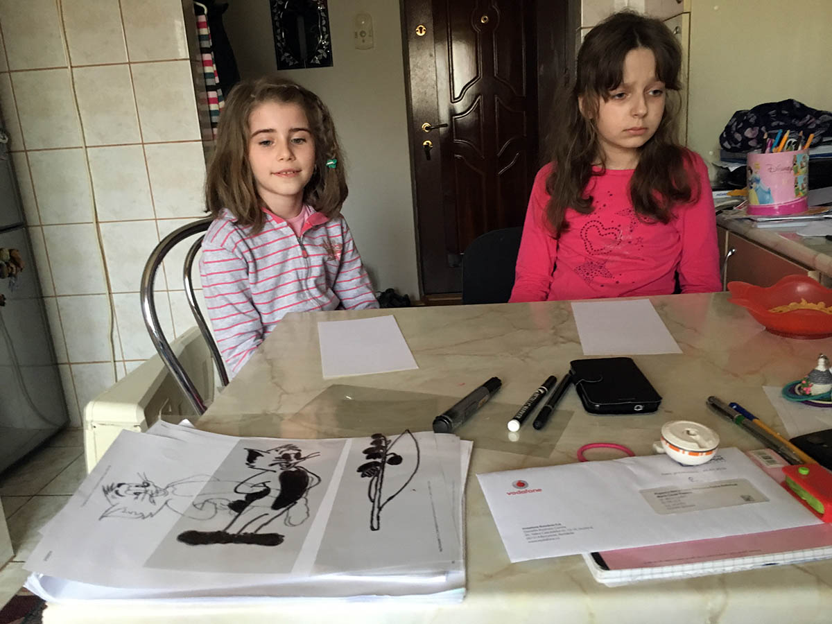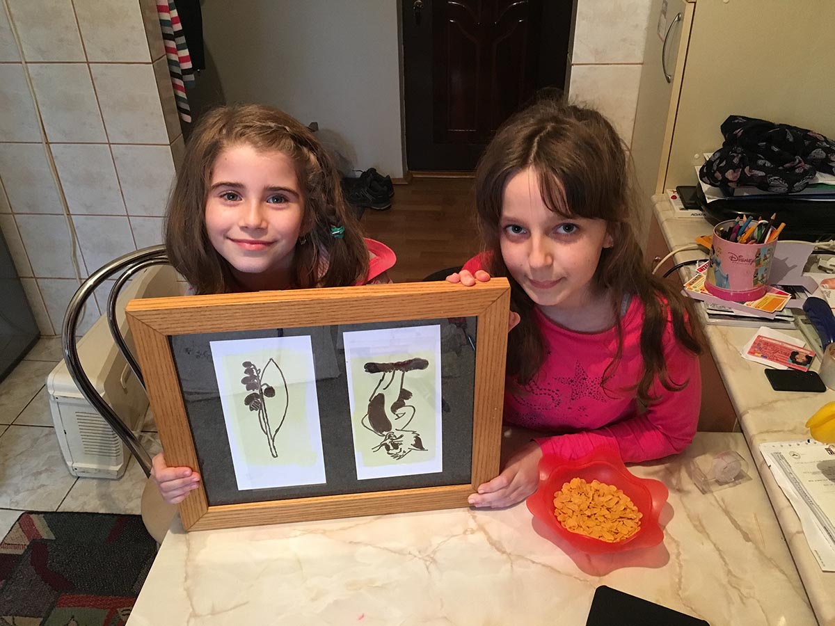 Mai intai au desenat cu markere permanente pe folie, prima oara dupa un contur iar apoi ce au vrut ele. A urmat apoi intinderea solutiei argentice pe hartie si uscarea ei (rapida, cu feonul :D). Au pus apoi in presa si au expus cu ajutorul unui aparat de bronzat :). Magia a continuat in baie, unde pozele au fost spalate, apoi tonate si in cele din urma fixate. Ce sa mai, o joaca de copil!