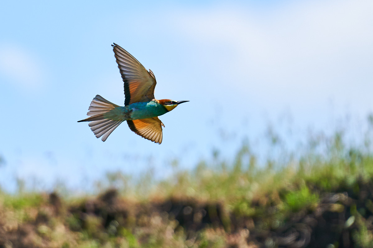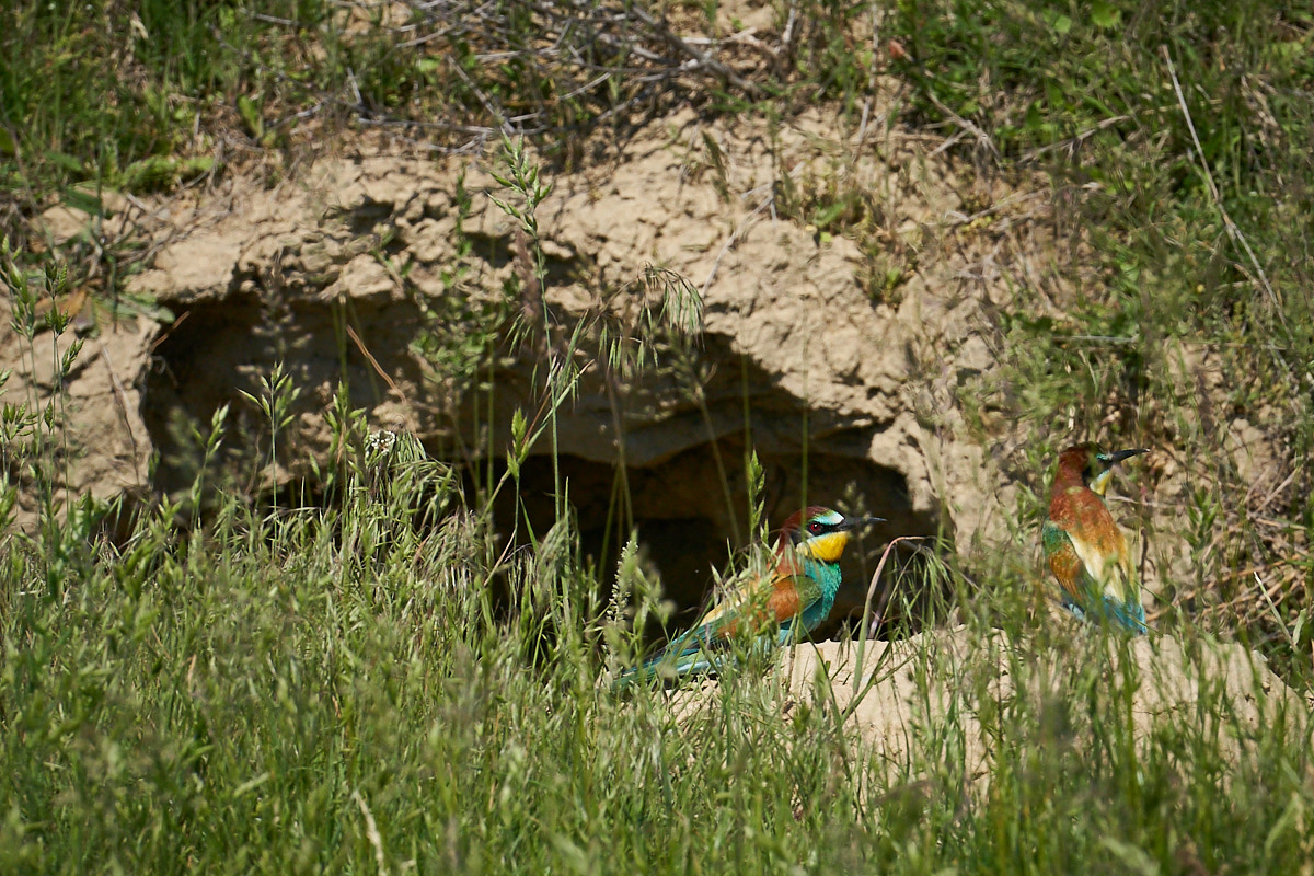 The most heard argument I’ve encountered over the years was that mirrorless cameras are no match in tracking fast moving subjects like birds in flight (BIF) compared to dSLRs. So, the first moment I got some spare time I ran to check a nesting place near my hometown of some gorgeous birds: the Bee Eaters.